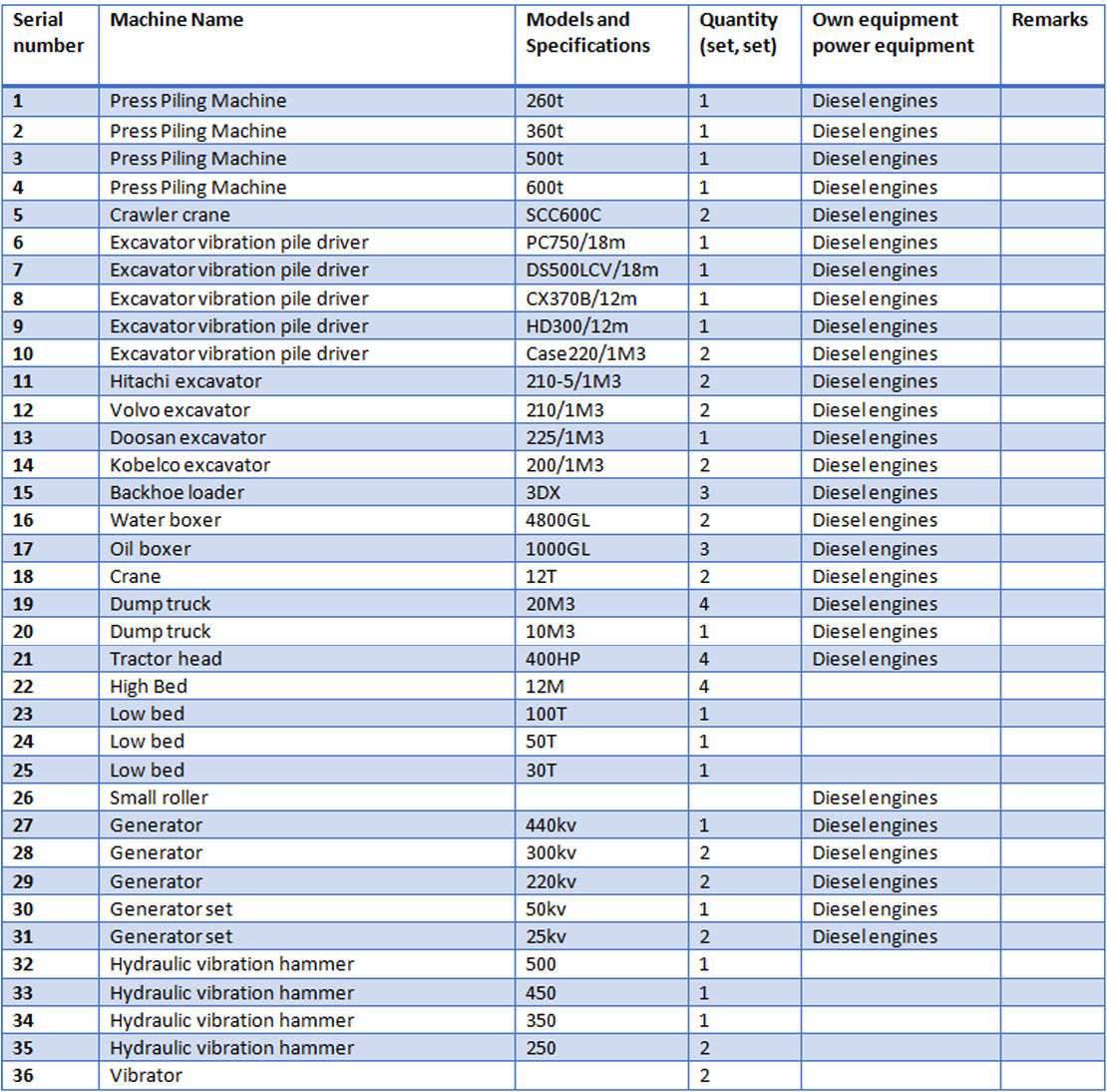 Equipment lists